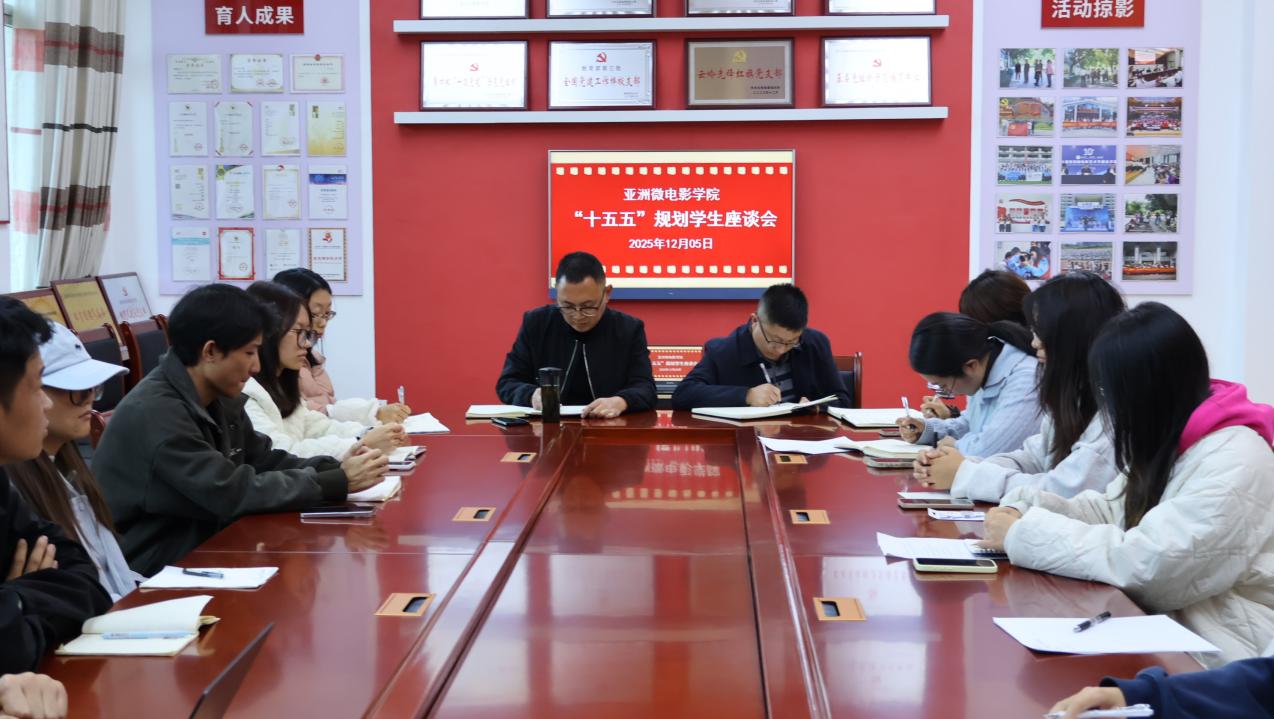 12月6日,亚洲微电影学院召开“十五五”规划学生座谈会,学院班子成员,各科室负责人和教师代表出席座谈会,各在校班级班长、学习委员参加座谈会。