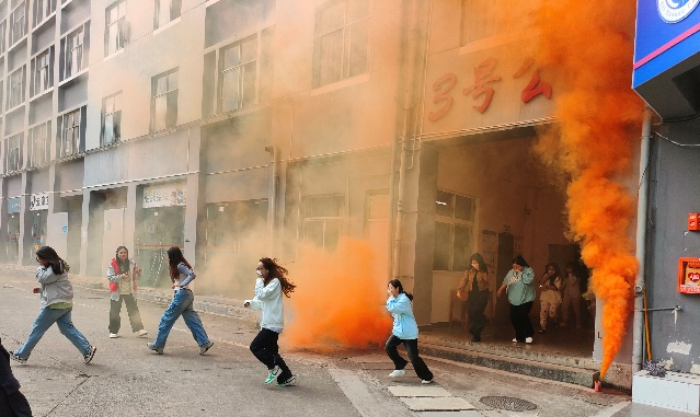 为确保演练活动安全、高效、有序进行,保卫处制定了详细的演练方案,并提前组织工作人员召开协调会,明确疏散路线、岗位职责和注意事项。演练开始前,各楼层疏散引导员提前就位,确保责任到人。随着急促的警报声响起,演练正式拉开帷幕,参演师生在疏散引导员的指引下,用湿毛巾捂住口鼻,弯腰低姿,沿着预定疏散路线,快速、有序地向楼外安全地带撤离。整个疏散过程紧张有序,仅用时3分钟,所有参演师生便全部安全撤离至指定集合点,演练达到了预期效果。