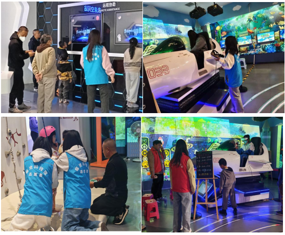 活动开展前,科技馆负责人对志愿者进行专项培训,讲解服务流程、展品知识及应急处理规范并完成岗位分工部署,为活动有序开展奠定坚实基础。活动上,志愿者们化身“科学向导”与“安全守护者”,在各展区耐心为游客解读展品原理,协助开展“科技小课堂”“科技制作坊”等趣味互动活动。