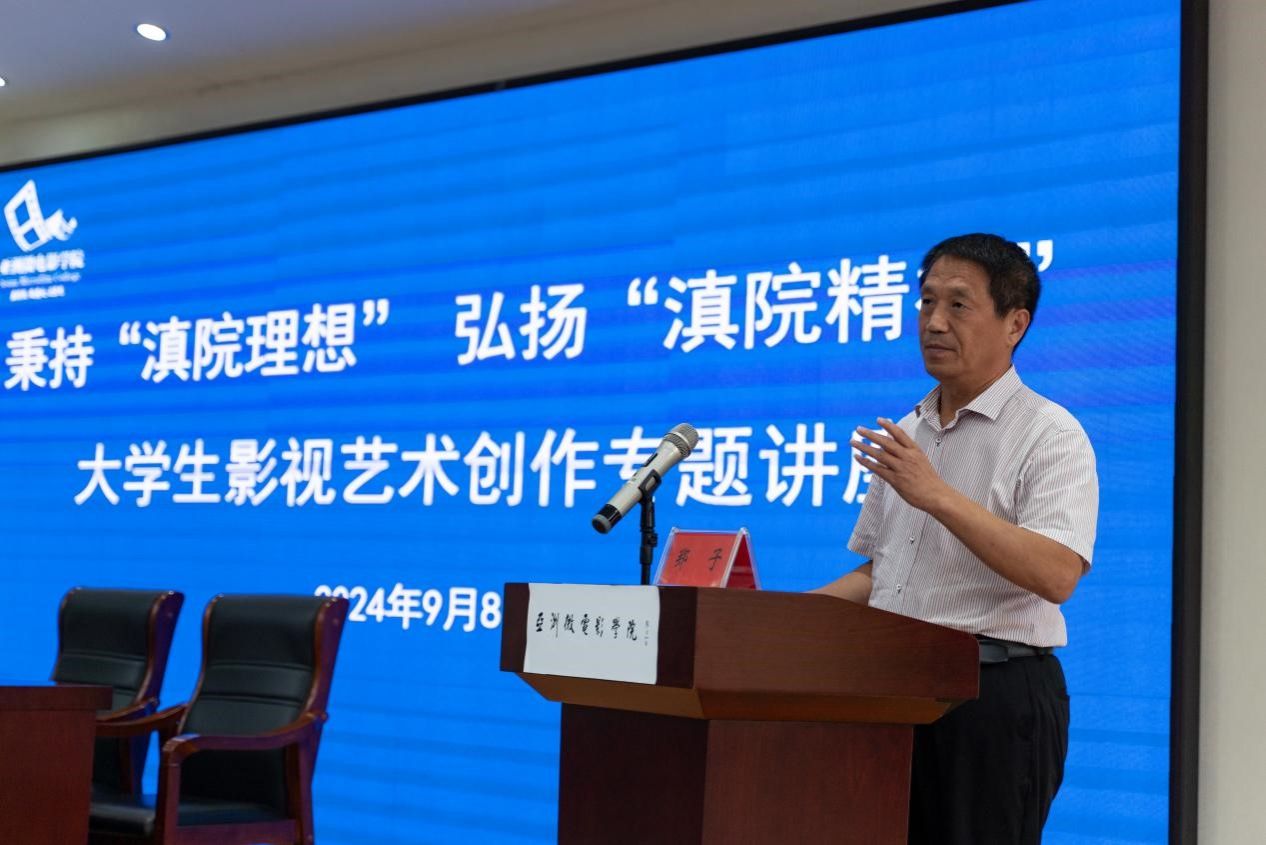 亚洲微电影学院副院长陈彦雄在致辞中向远道而来、不辞辛劳的斯琴高娃老师及其调研团队表示热烈的欢迎和诚挚的感谢,并介绍了亚洲微电影学院的发展情况和学校2024年度“斯琴高娃微电影奖”影像创作大赛的开展情况。他指出,微电影创作不仅是一项艺术活动,更是一种精神追求,它需要用心去感受生活、用镜头去捕捉瞬间、用故事去传递情感,让这次难得的聚会,成为我们微电影创作征途上一个闪耀的新起点,点燃我们内心更炽热的创作火焰。