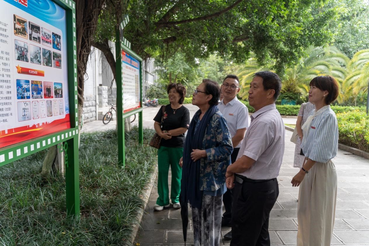 见面会开始前,斯琴高娃一行参观了亚洲微电影学院的文化建设和实践教学成果。