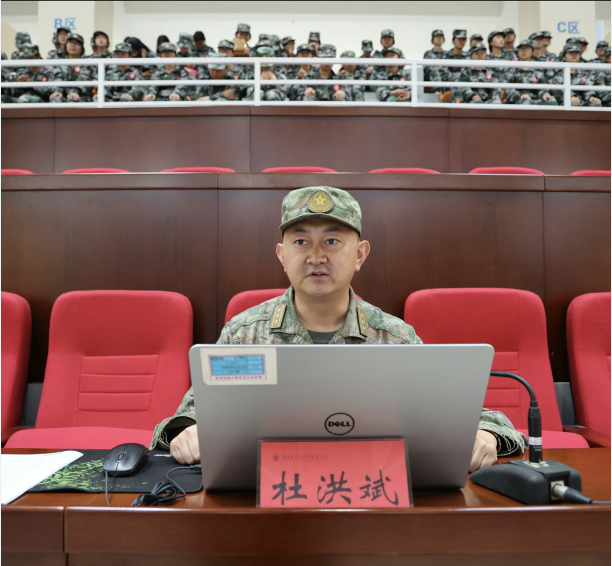 杜洪斌从“我国国防基本常识”、“当前我国国家安全面临的严峻形势”、“如何从战略全局的高度认识富国与强军的关系”“国防建设需要我们共同努力”四个方面,结合视频与自身经历,给2024级新生带来一场生动而精彩的专题讲座。