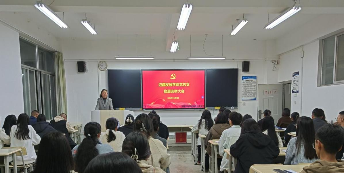 12月3日,边疆发展学院党总支召开党员大会进行党总支委员会换届选举,全体师生党员参加会议。