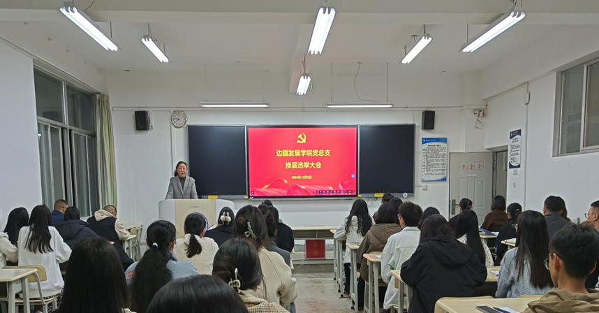 近日,边疆发展学院党总支召开党员大会进行党总支委员会换届选举,全体师生党员参加会议。