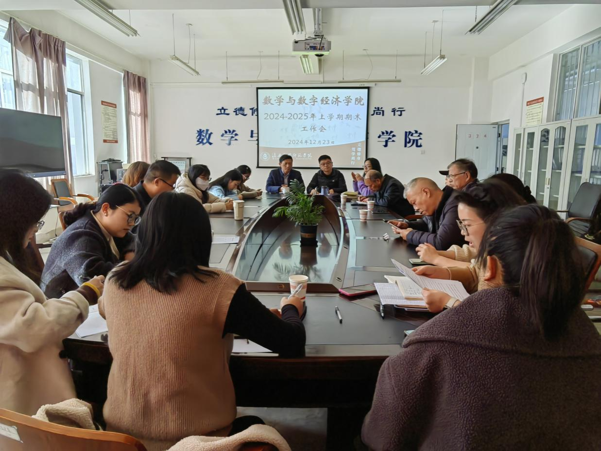 近日,数学与数字经济学院召开2024-2025学年上学期期末工作会,总结本学期工作、部署期末重点工作及下一步工作计划,全体教职工参加会议。