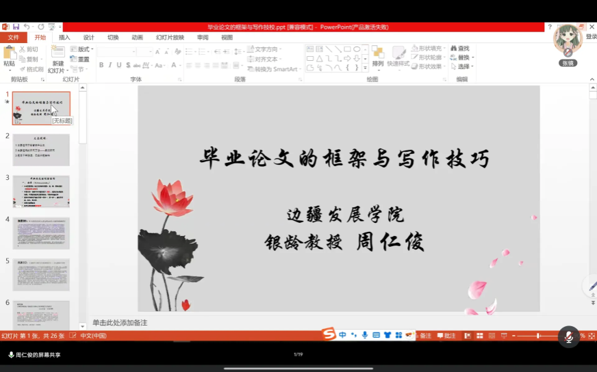 近日,滇西科技师范学院2025年春季学期“银龄大讲堂”第一讲由边疆发展学院银龄教授周仁俊主讲。讲座以“毕业论文的框架与写作技巧”为主题,通过腾讯线上会议形式开展。边疆发展学院毕业班200余名学生线上聆听讲座。