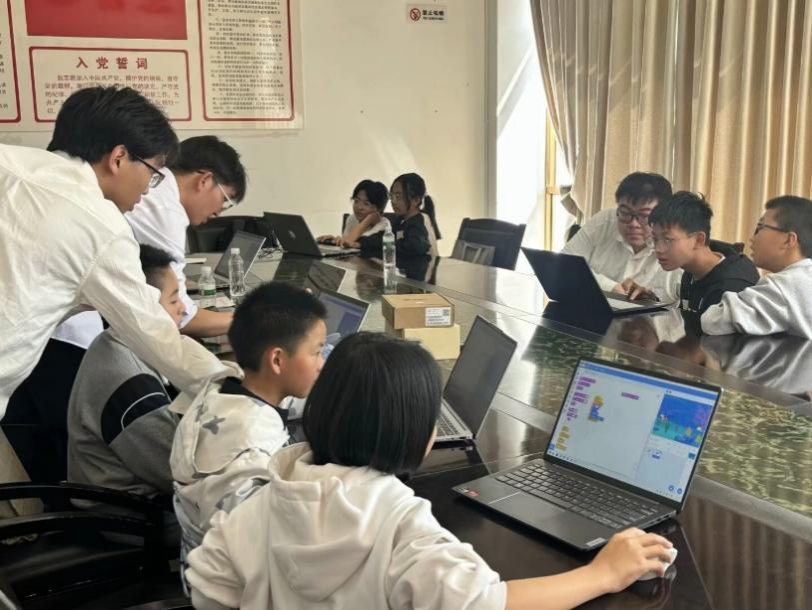 4月19日,信息学院师生党员、团员骨干组成志愿团队赴文华社区开展“AI未来计划”青少年编程公益培训志愿服务活动,为社区小学生们带来一场AI科普。