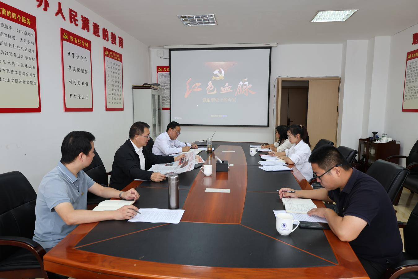 主题党日活动中,党员干部学习贯彻习近平总书记在纪念中国人民抗日战争暨世界反法西斯战争胜利80周年大会上重要讲话,观看《红色血脉——党史军史上的今天》专题片,专题学习新华社国家高端智库报告《思想殖民——美国认知战的手段、根源及国际危害》,结合纪检监察、审计工作实际开展研讨。