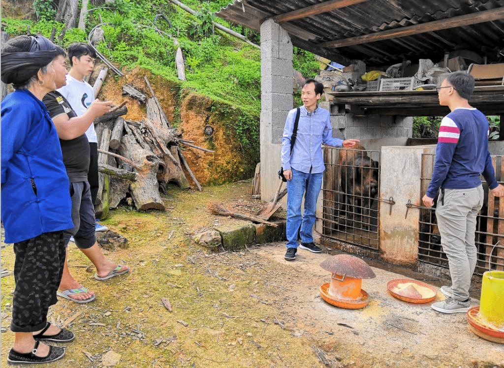 党支部书记周启武现场为农户讲解养殖方法