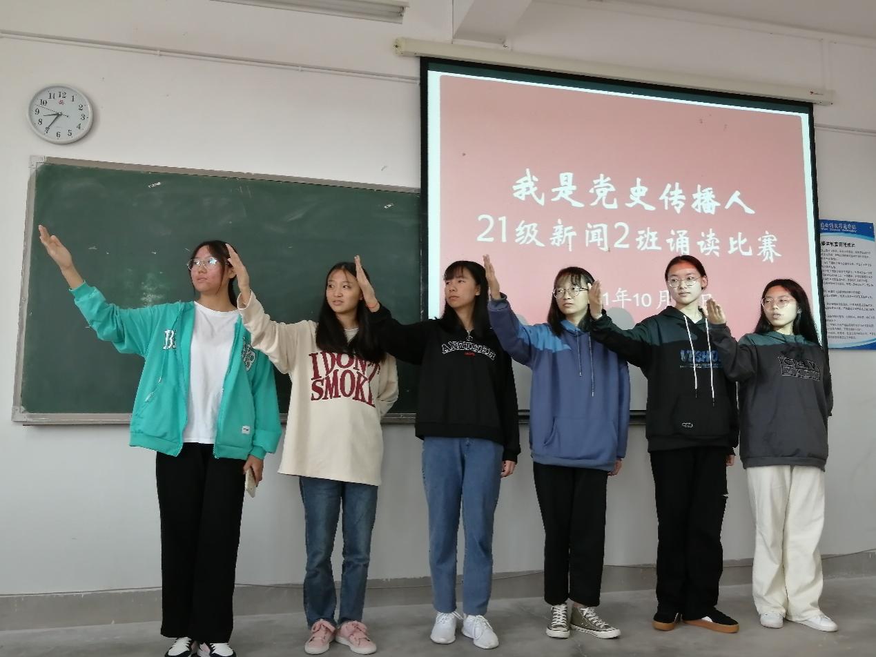 11月1日,文学院团总支组织开展的“争做党史传播人”主题诵读活动。同学们以小组为单位充分发掘红色资源,讲述党史故事。