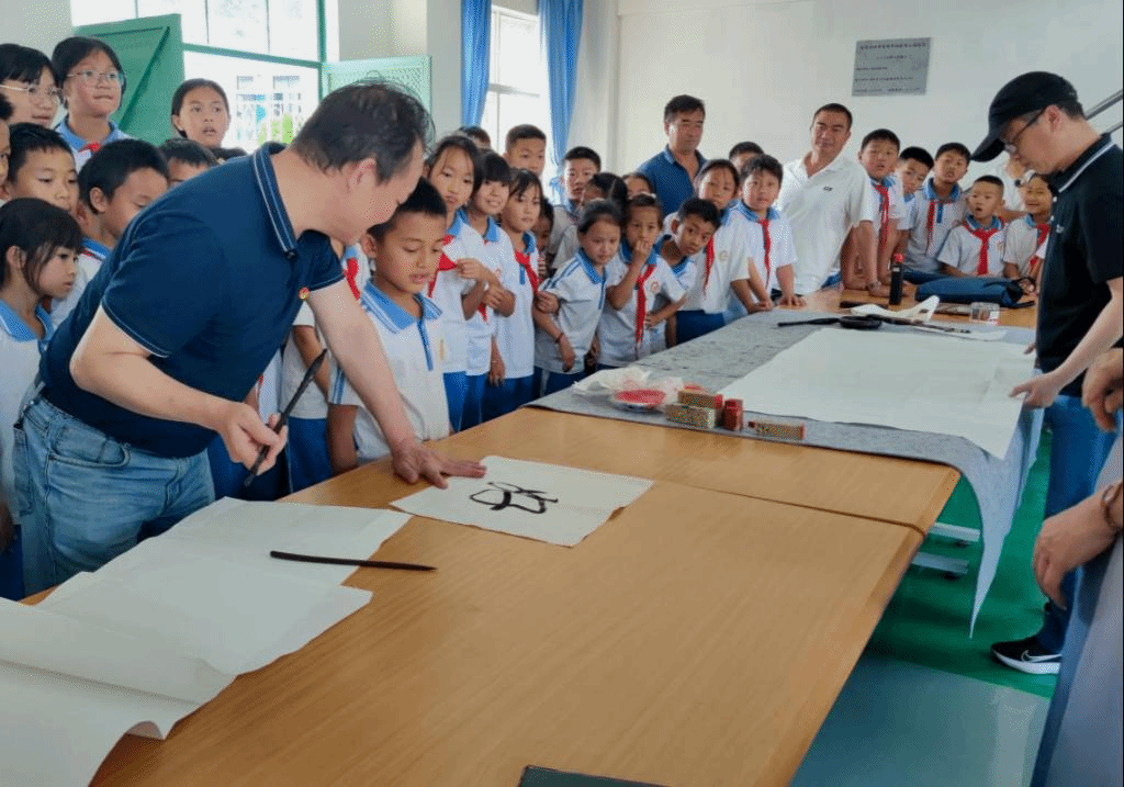 活动中,文学院教师通过讲授“汉字书写规范化”和书法创作展示的方式,为幸福镇中心学校师生进行了国家通用语言文字的辅导。