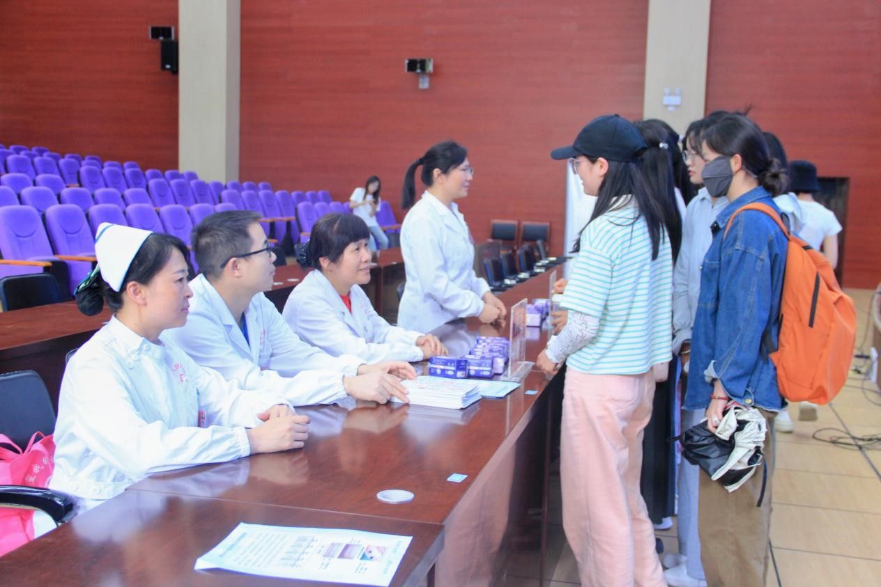 讲座结束后,在场专家、教师为同学们解答各种有关健康知识的问题。医护人员组织义诊咨询。