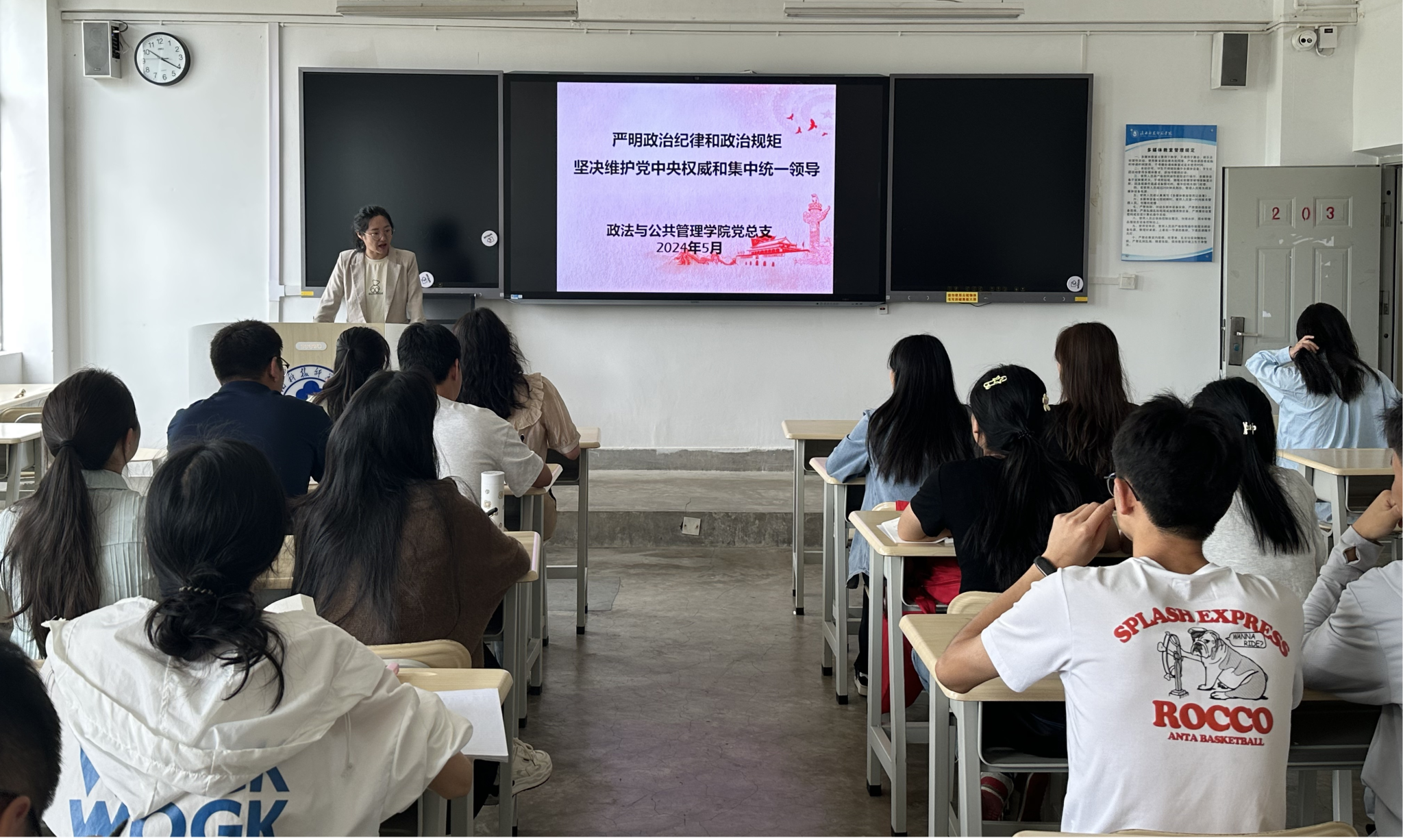 在全党开展党纪学习教育之际,政法与公共管理学院学生党支部组织党员及本年度发展对象认真学习《中国共产党纪律处分条例》,并开展题为《严明政治纪律和政治规矩,坚决维护党中央权威和集中统一领导》的专题党课。