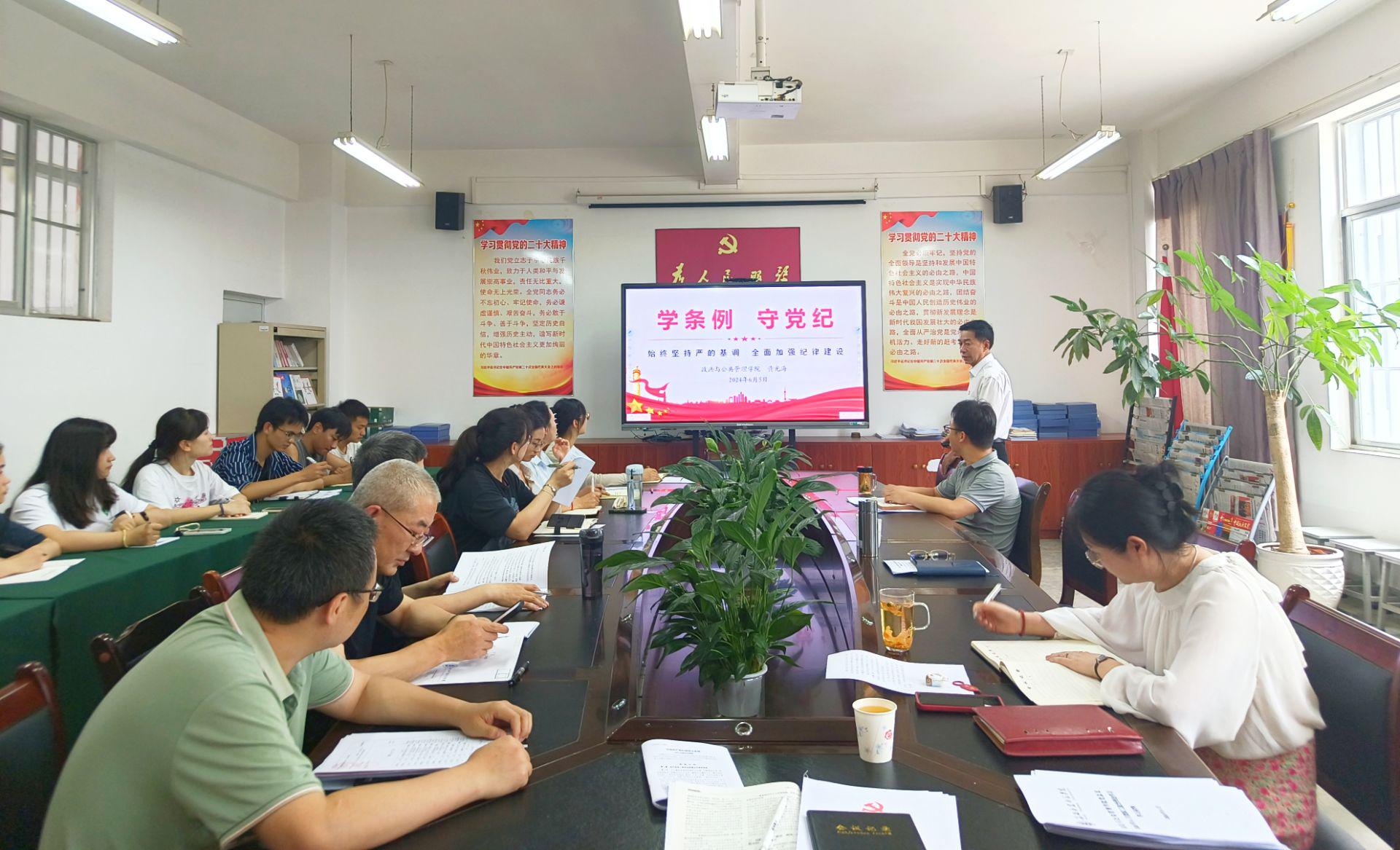 党总支书记以《学条例 守党纪——始终坚持严的基调 全面加强纪律建设》为题,围绕促进全党深刻领悟“两个确立”的决定性意义、坚决做到“两个维护”;贯彻落实习近平新时代中国特色社会主义思想,将习近平总书记关于全面加强党的纪律建设重要论述转化为纪律要求;靶向施治重点难点问题,用铁的纪律管全党治全党;总结全面从严管党治党经验,实现制度的与时俱进四个方面要求全体党员学纪、知纪、明纪、守纪,时刻将党纪党规铭记于心,牢固树立纪律意识和规矩意识,将其作为行为准则和道德标准,自觉做到在党纪国法面前知敬畏、存戒惧、守底线。