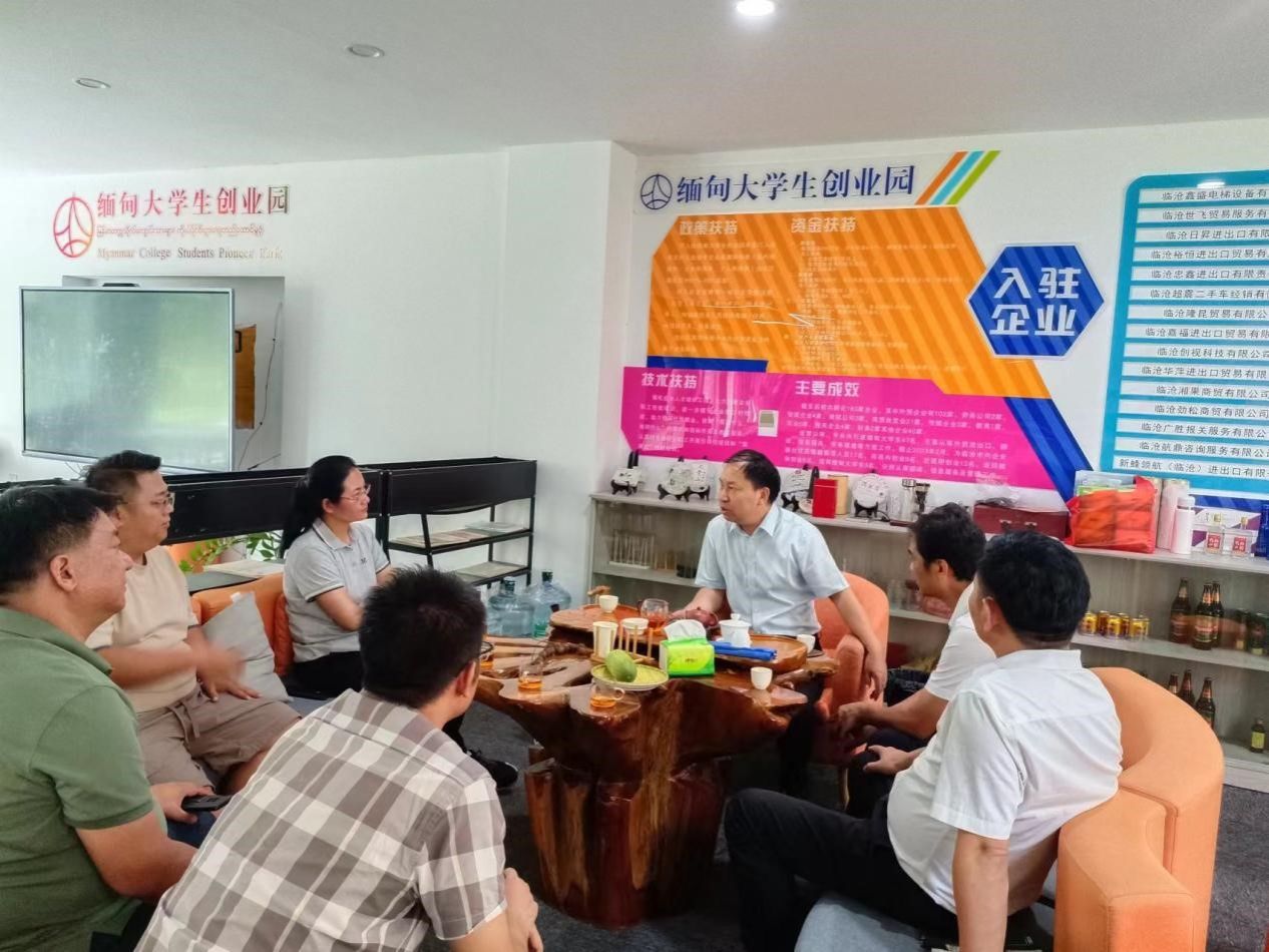 此外,梅英一行前往缅甸大学生创业园区及孟定翻译协会等地进行调研。在缅甸大学生创业园区,梅英与园区内的创业者们亲切交流,了解园区企业情况;在孟定翻译协会,双方就语言服务、文化交流等领域的合作进行探讨,为拓宽学生国际视野、提升跨文化交际能力搭建了新平台。