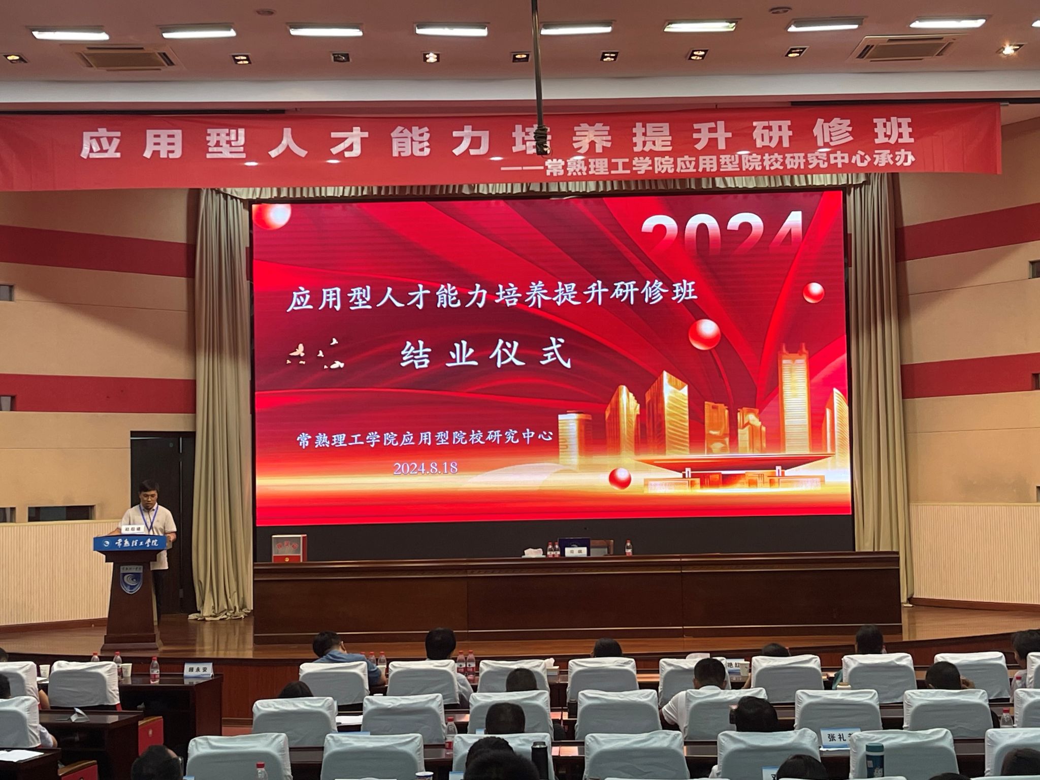 8月18日下午,学校应用型人才培养能力提升研修班在江苏省常熟理工学院东湖校区圆满结业。为期7天的研修班,采取“专题讲座+实践教学+交流研讨”相结合的方式安排了12场专题讲座、3次现场实践教学活动、2次研修分享活动。