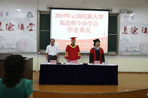 6月27日,学校与云南民族大学联合办学毕业生毕业典礼在我校215阶梯教室隆重举行,云南民族大学副校长王德强、临沧师范高等专科学校校长那金华出席毕业典礼,为351名应届毕业生颁发毕业证书和学位证书并讲话。会议由副校长董大校主持。