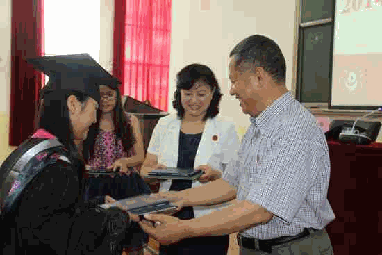 (宣传部 张汉仙)6月24日,临沧师范高等专科学校与云南民族大学联合办学的首届129名本科毕业生齐聚215阶梯教室,怀着激动的心情,全体毕业生依次走上主席台,从云南民族大学常务副校长和少英,临沧师范高等专科学校校长那金华手中接过毕业证书和学位证书。和少英、那金华与每个同学亲切握手并为毕业生“拨穗”,把最美好的祝愿送给每个学子。
