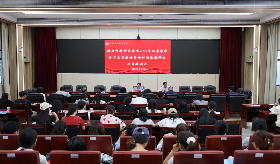 为确保2025年秋季学期体育美育浸润行动计划顺利推进,提升派驻师生的履职能力,8月28日,学校组织开展专题培训,校党委委员、副校长梅英出席培训并提出工作要求,即将派驻的63名师生参加培训。
