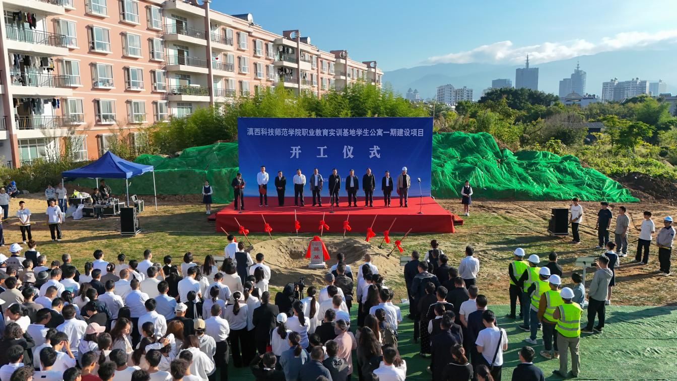 阮凤斌宣布滇西科技师范学院职业教育实训基地学生公寓一期建设项目开工。随后,学校领导班子成员、临沧市和临翔区相关领导、施工单位代表、监理单位代表共同为项目培土奠基。