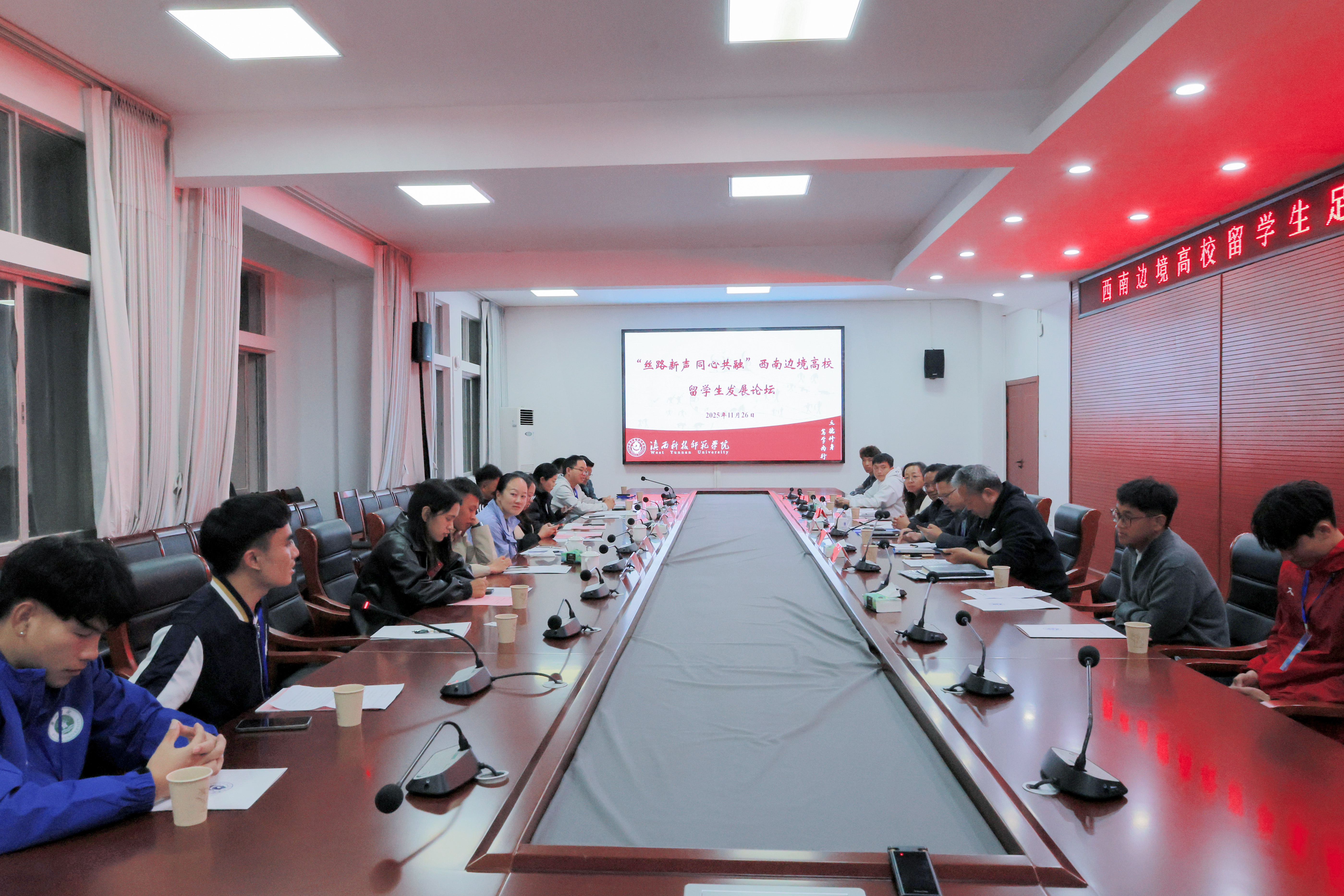 为提升留学生招收培养质量,推动同类高校相互学习借鉴办学经验,11月26日,我校举办了“丝路新声,同心共融”——西南边境高校留学生发展论坛。论坛邀请参加首届“西南边境高校留学生足球超级联赛”(以下简称“边超”)的红河学院、保山学院、普洱学院、滇西应用技术大学、德宏师范学院及我校部分留学生足球队师生代表参会。校党委副书记施勇出席并讲话。