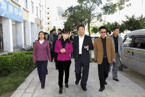 叶晴女士(左二)在我校党委书记陪同下参观校园