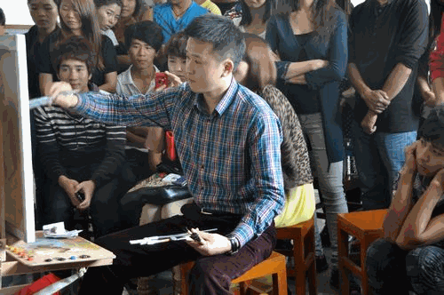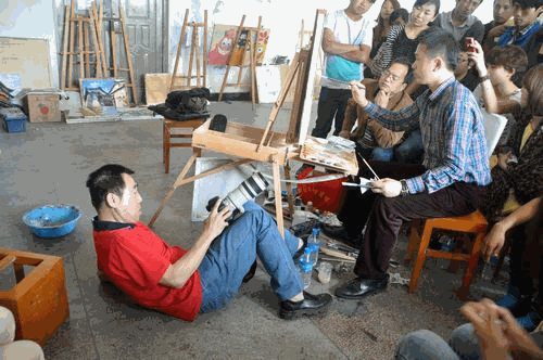 曾传兴教授在示范中,对写生步骤及油画创作中应该注意的问题以及材料、工具的使用,都作了详细的讲解,通俗而深入;师生们仔细观摩聆听,并不时向曾老师提问,曾教授都一一作答。