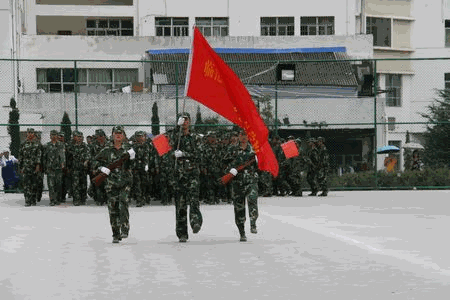 在雄壮有力的《中国人民解放军军歌》后,结训典礼正式开始。校长那金华在临沧军分区政治部副主任陈勇的陪同下检阅学生军训团,伴随着“首长好”、“为校争光”的响亮口号,军训团的全体同学展现出了昂扬的斗志和饱满的精神风貌。