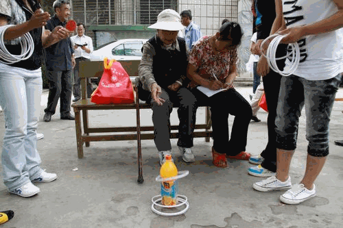 图为汪莲菊老师套圈