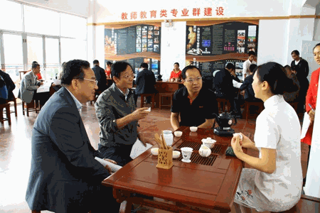 (校党委宣传部张玉超)2010年10月20日上午,云南省发改委副巡视员保卫民,临沧市常务、副市长郭惠云,以及省国土厅、市教育局等多家单位的有关领导人莅临临沧师专视察新建的校史馆,了解学校“专升本”项目筹备情况。农学系在校史馆前,笃学楼一楼大厅,摆开十张茶桌,献上五套茶艺,一方面是为各位领导接风,一方面是向其展示茶学专业的实训成果。