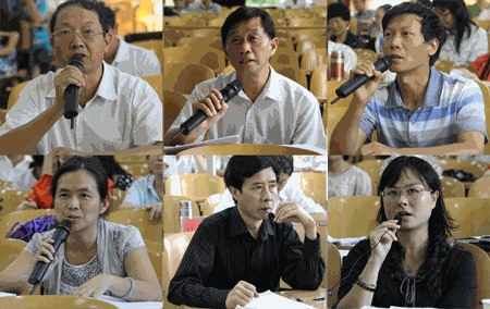 本次比赛评委团成员11名,学校党委书记谢昌浩教授、校长那金华教授、副书记赵庆明、副校长董大校教授、纪委书记双春仁五名校领导出任评委,另六名均是来自学校系、部、处的教学精英。在选手20分钟的说课后,评委团成员对选手提问,仿真将要到来的合格师专评估专家组们的提问。在本次说课比赛中,评委团成员们的提问犀利、细化,直指选手说课的弱点、盲点,有时带有点质疑的味道。如,工学交替的“工”如何安排?举实例说明,心理学专业的教师们在服务学校师生方面具体做了哪些工作?如此强的理论性怎么让学生学有兴趣、学有成效?评委团的提问,目的在于帮助教师严谨说课的思维,进一步优化说课的内容。除了提问,评委团还提了大量的建议。如,《思想道德修养》课程可贯穿于学生学习生活的方方面面,要想方设法多开辟一些新颖、又贴近学生实际的教育载体。设计法律内容课件的装饰图标,可更换为象征法律公平性的天平。