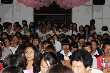 (校党委宣传部张玉超)2010年6月12日晚,电教楼阶梯教室座无虚席、站无空间,连两条通道和后门口都挤满了人。一张灿烂的笑脸出现了,面对同学们,美丽的大眼睛里总是满载着慈爱,可亲可敬可爱的那金华校长亲临政教系毕业晚会,全场沸腾了。
