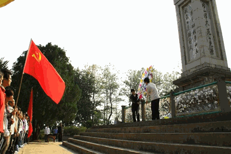 2010年4月5日清晨,临沧师专党委宣传部部长、党校副校长周孔张带领604名入党积极分子来到烈士陵园缅怀先烈,在纪念碑前诵读入党誓词。