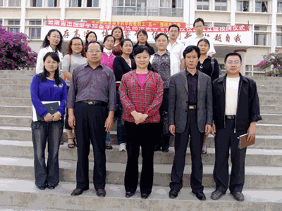 校长那金华(前排中)、副校长董大校(前左二)、教务处副处长李发荣(前右二)与骨干教师合影