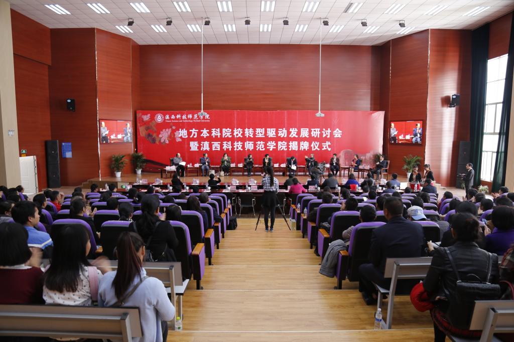 (宣传部 张汉仙)2015年12月28日下午,滇西科技师范学院举行“地方本科院校转型驱动发展研讨会”,研讨会上,各方专家云集,大家共同围绕地方本科院校转型驱动发展进行探讨。云南省妇联副主席马迎春,中央新影集团微电影部主任郑子,中国农业大学统战部部长赵竹村教授,中央民族大学博士生导师姚丽娟教授,重庆科技学院校长严欣平教授,云南师范大学副校长原一川教授,楚雄师范学院书记谭丛教授,文山学院副院长谷雨教授,普洱学院副院长于干千教授参加此次研讨会并做重点发言。
