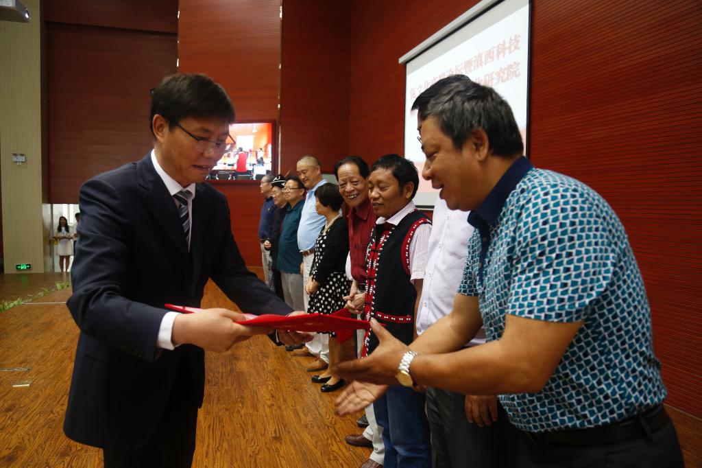 (文/党委宣传部 张玉超 图/校园记者 张致远)7月8日上午,在国际佤文化研究院正式揭牌成立后,滇西科技师范学院又举行了11名特聘教授聘任仪式,滇西科技师范学院校长、博士生导师王德强教授为11名特聘教授颁发聘任证书。