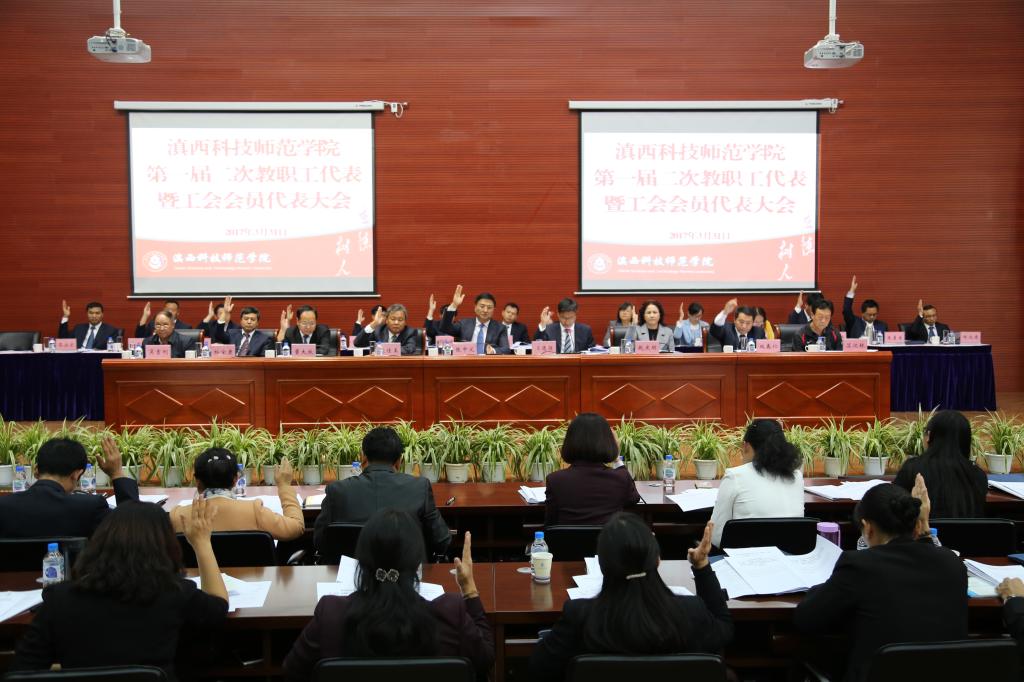3月31日,我校一届二次教职工代表暨工会会员代表会议召开。校党委书记张中义,校长王德强,副校长段佳美,特邀代表苏汉林、吴吉刚在主席台前排就坐。