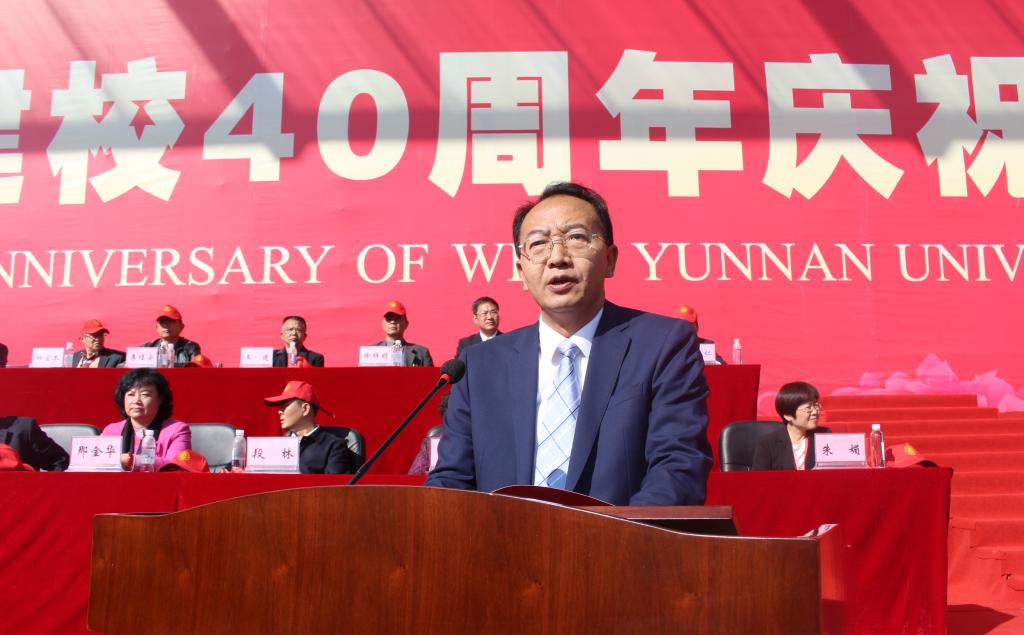 今天,我们欢聚在旗山脚下、西河之畔,共同庆祝滇西科技师范学院建校40周年。这既是学校改革发展史上的一件盛事,也是临沧教育发展史上具有里程碑意义的一件大事。在此,我代表中共临沧市委、市人大、市政府、市政协和全市260万各族干部群众,向滇西科技师范学院全体师生员工致以热烈的祝贺,向长期以来关心支持临沧教育事业发展的各级领导、社会各界人士表示衷心的感谢!