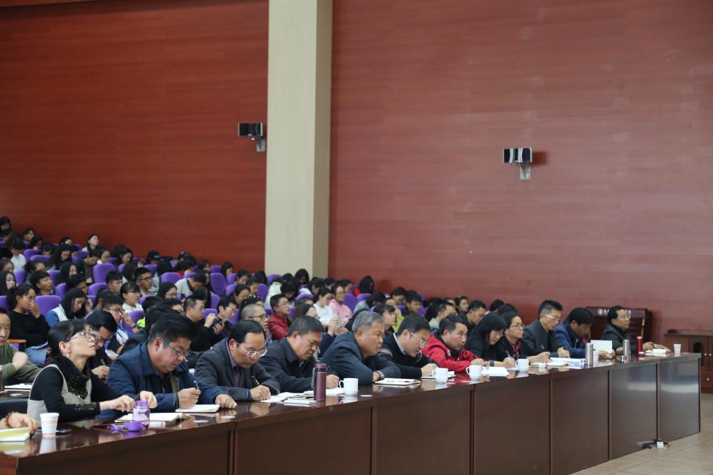 12月18日,“共筑中国梦·同绘彩云南”2018年云南省高校百场形势政策报告会在我校举行。云南大学教授任新民为我校师生作了主题为《当前国际形势与新时代中国外交》的专题报告,殷切希望广大师生要认清当前国际形势,把握好新时代中国外交政策。报告会由校党委副书记李国钰主持,校党委委员、副校长段佳美、黄城书,校党委委员、纪委书记双春仁出席报告会。