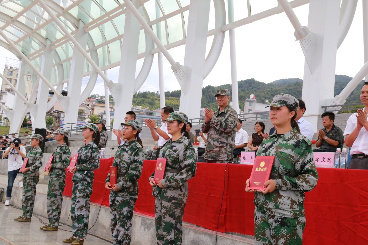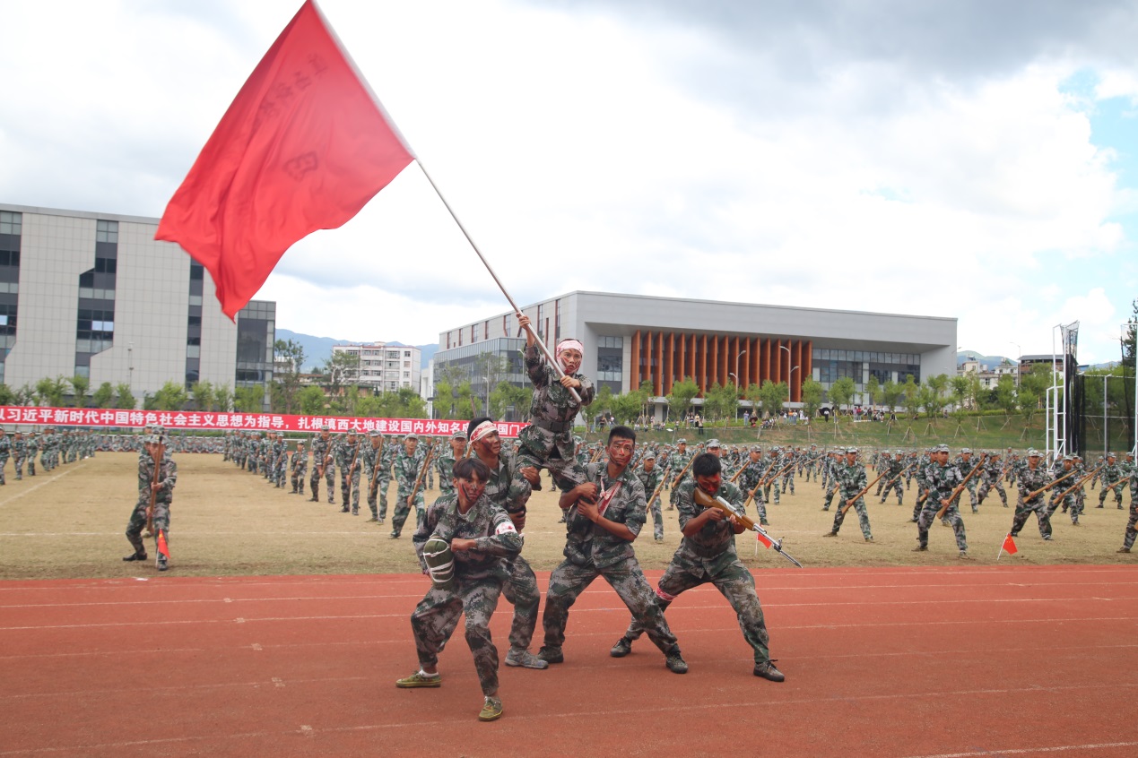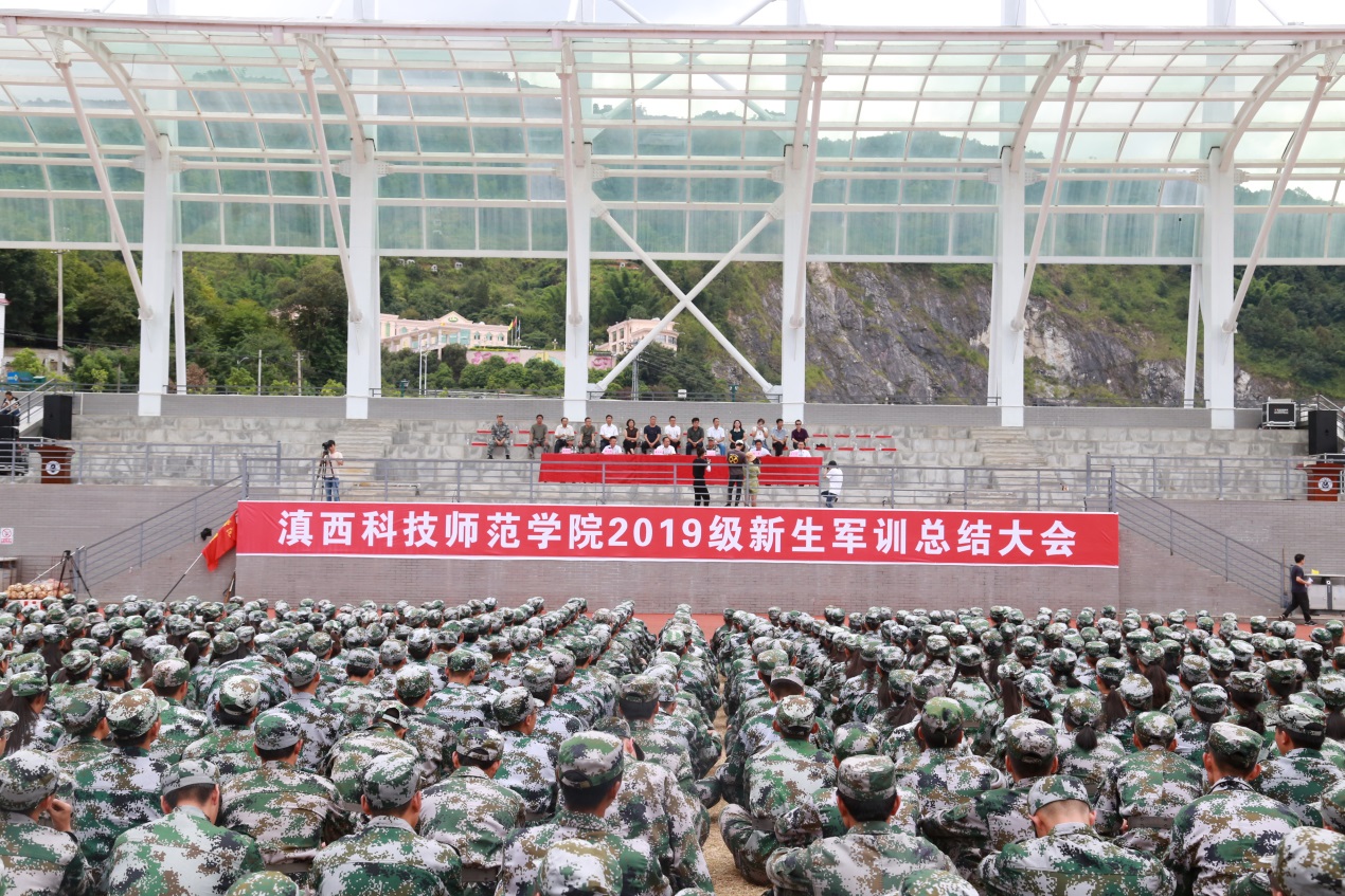 9月14日下午,滇西科技师范学院举行2019级新生军训结训典礼,学校副校长董大校、临沧军分区副司令员李宁明出席结训典礼。