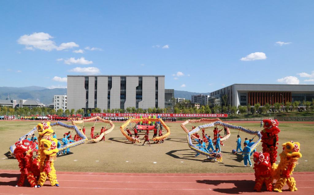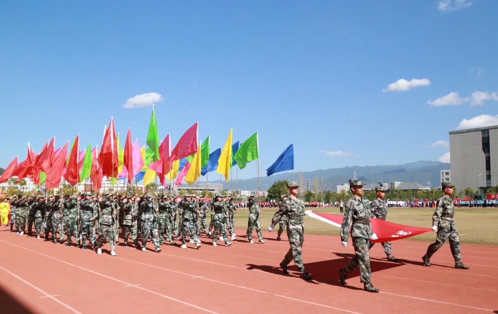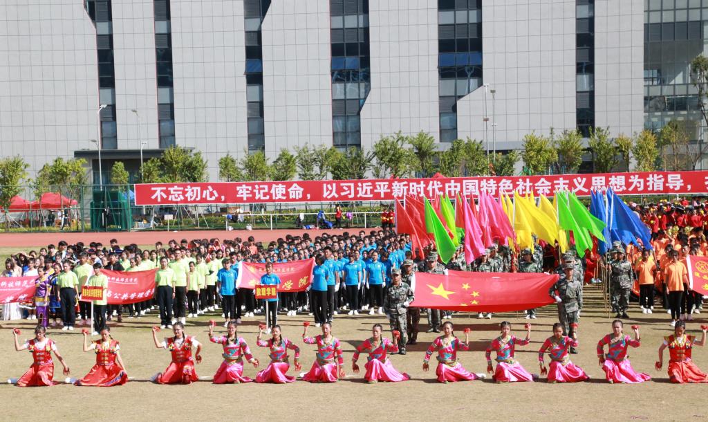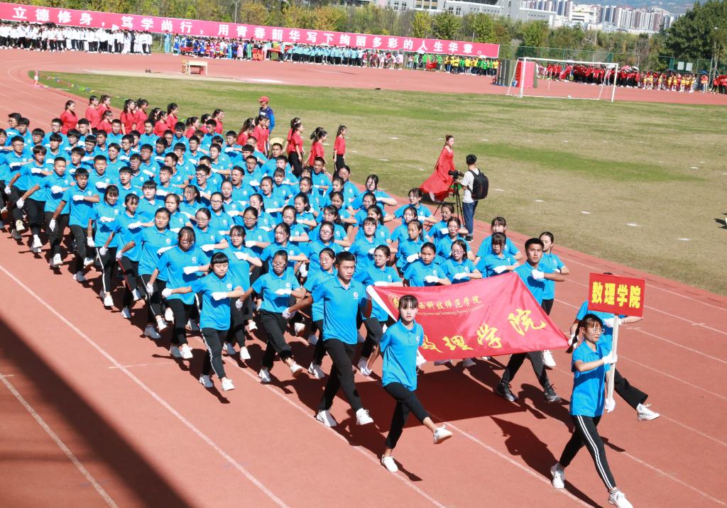 11月21日下午,天朗气清、阳光明媚,滇西科技师范学院举行第五届冬季田径运动会开幕式,党委书记张中义宣布第五届冬季田径运动会开幕,副校长段佳美致开幕词,副校长董大校主持开幕式,副校长黄城书出席开幕式。