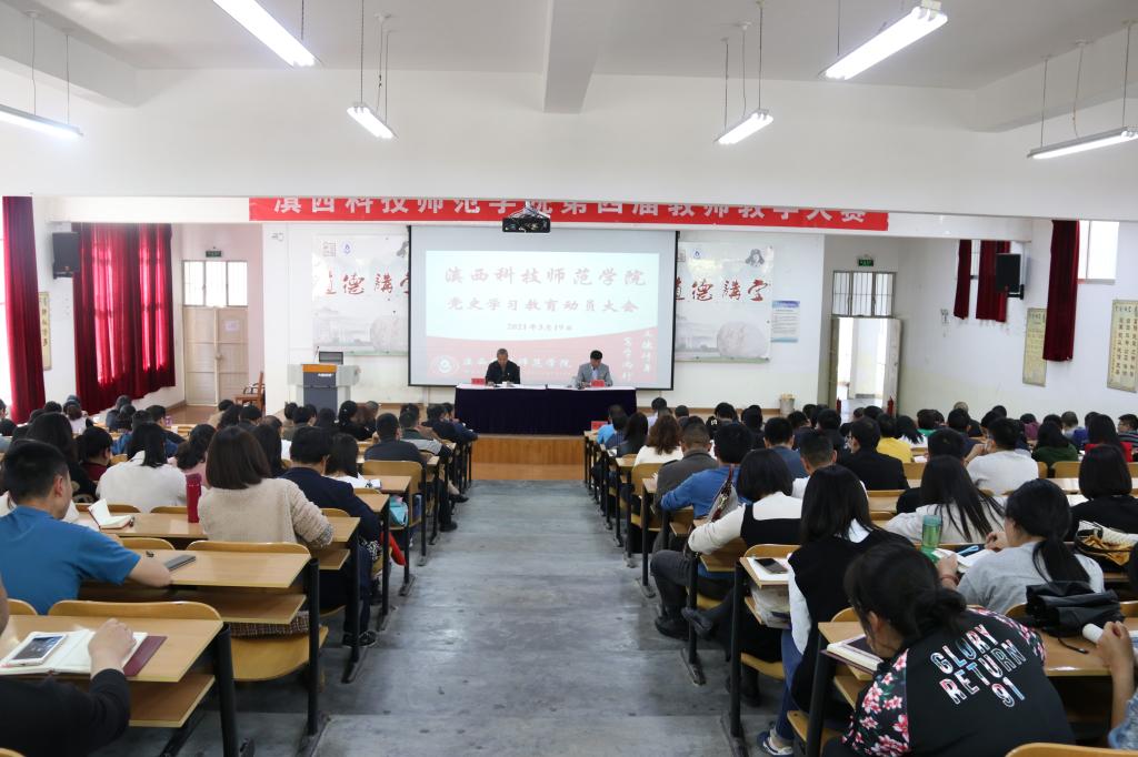 3月19日下午,滇西科技师范学院召开党史学习教育动员大会,深入学习贯彻习近平总书记在党史学习教育动员大会上的重要讲话精神,贯彻落实中央、省委和省委教育工委工作部署,对学校党史学习教育工作进行安排部署。党委书记张中义作动员讲话,副校长段佳美主持会议。学校党政领导班子成员、科级以上领导干部、党支部书记、专职组织员和专职辅导员参加大会。