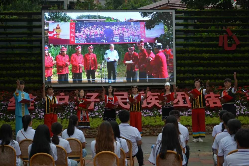 结合习近平总书记给云南省沧源县边境村老支书们的回信构思了情景剧《佤山的声音》,并到沧源县班洪乡下班坝自然村进行了实地拍摄和展演,故事讲述了一位大学毕业生在学习了习近平总书记给云南省沧源县边境村老支书们的重要回信精神后回乡创业的故事。在回信广场,同学们还深情朗诵了《我们都是收信人》主题诗歌。