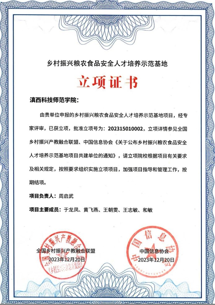 近日,全国乡村振兴产教融合联盟与中国信息协会联合发布《关于共建乡村振兴粮农食品安全人才培养示范基地的通知》,学校被评为全国首批乡村振兴粮农食品安全人才培养示范基地。