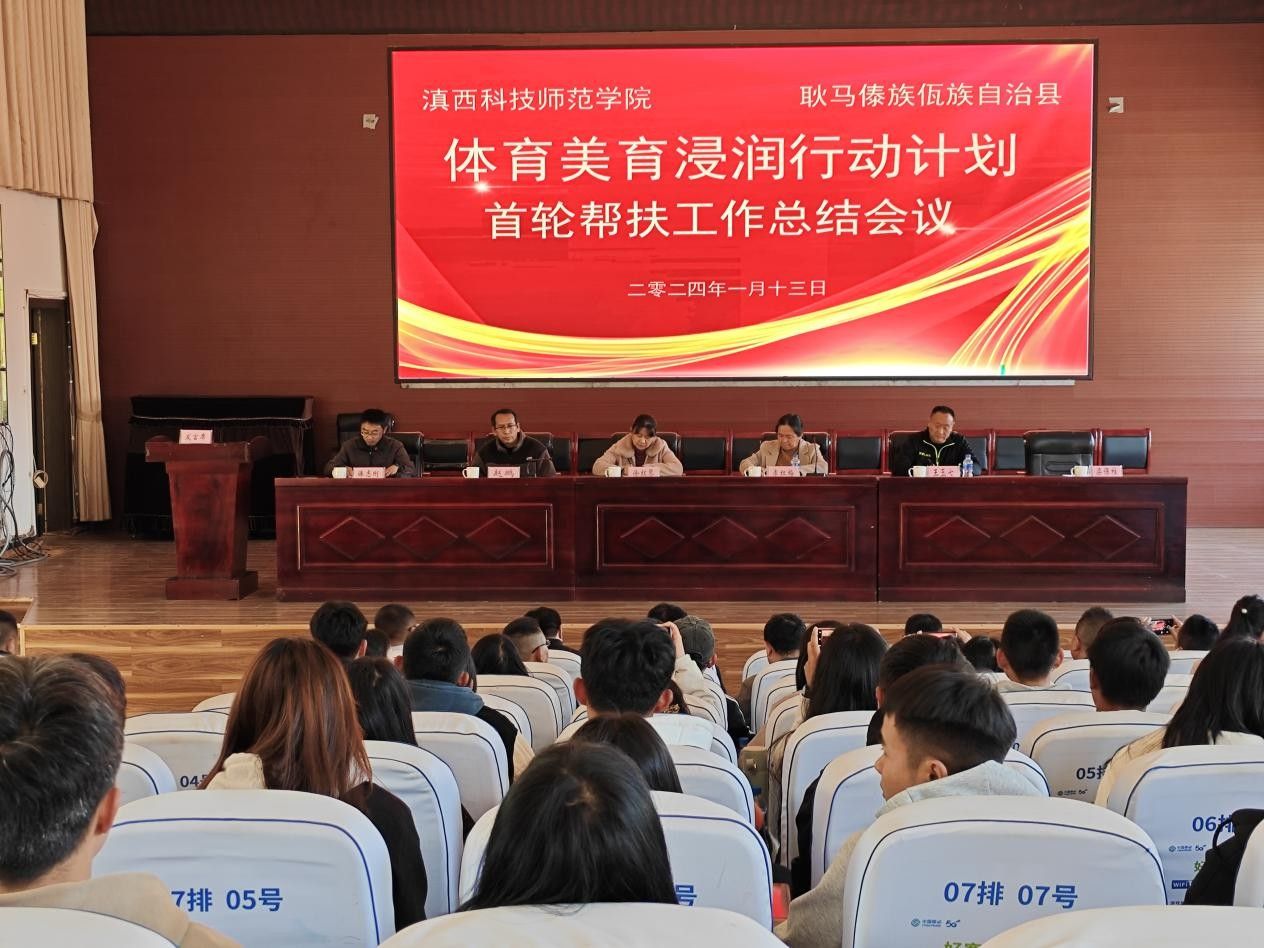 1月13日,滇西科技师范学院与耿马县在耿马县一中召开第一轮体育美育浸润行动计划工作总结会。教务处处长李红梅,艺术学院书记王玉七,体育学院院长徐红琴,教务处副处长、浸润行动计划联络员赵鹏,耿马县教育体育局副局长俸志刚,耿马县美育浸润行动计划42名师生,耿马县实习点教师出席总结座谈会。