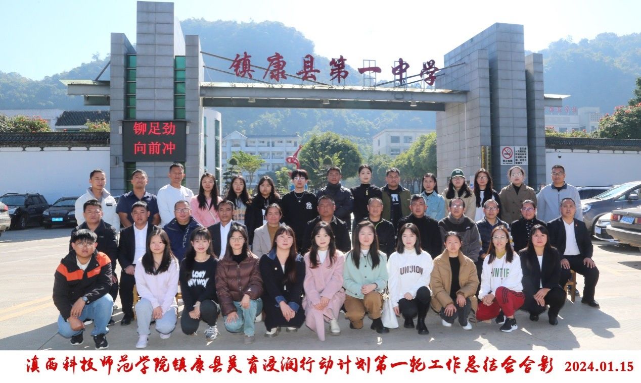 1月15日,滇西科技师范学院与镇康县在镇康县一中召开第一轮体育美育浸润行动计划工作总结会。教务处处长李红梅,艺术学院书记王玉七,教务处副处长、浸润行动计划联络员赵鹏,镇康县人民政府督学陈雷,镇康县教育体育局李世福,镇康县美育浸润行动计划21名师生,镇康县实习点师生出席总结会。