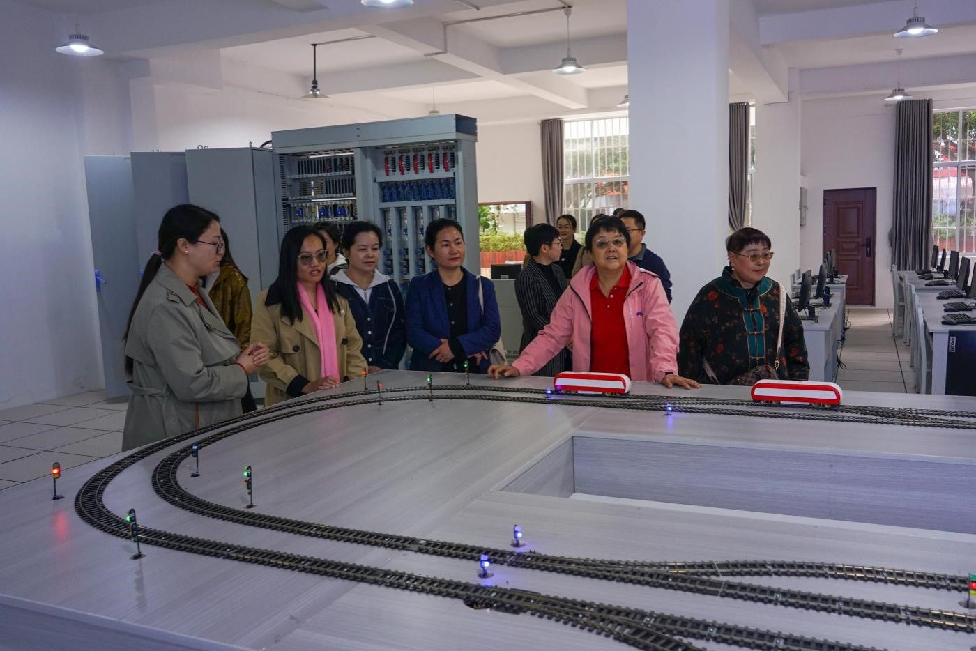 郑南南一行先后参观了教师教育学院实训室、亚洲微电影学院实训室、智能与信息工程学院实训室、数理学院能源动力工程实训室、航空与轨道交通学院实训室和生物技术与工程学院实验实训室。