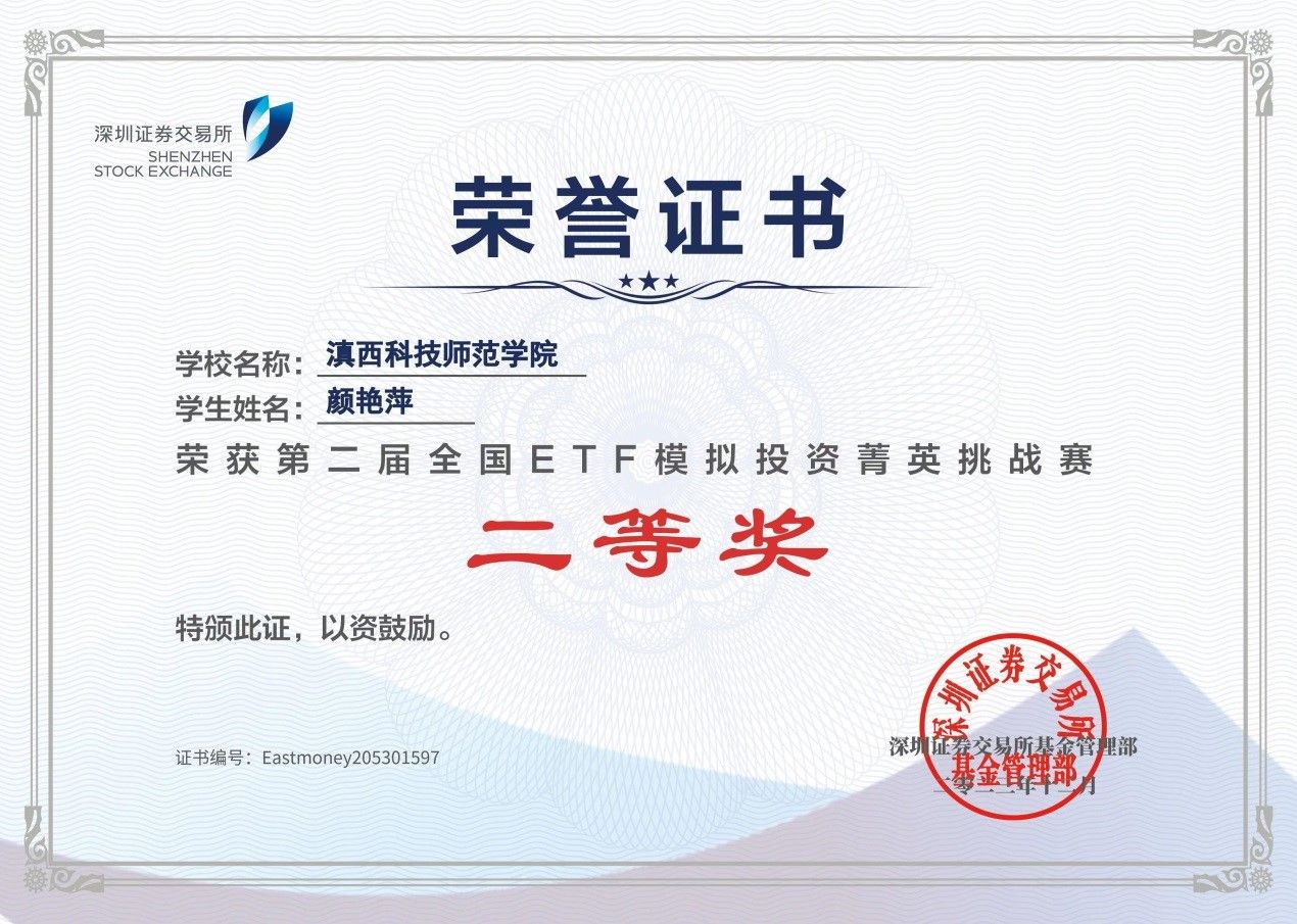 近日,第二届全国ETF模拟投资菁英挑战赛圆满落幕,由学校管理与经济学院团总支组织的2120名学子参加此次比赛,报名人数位列全国第14位。经过初赛复赛层层比拼、同学们一路披荆斩棘,最终一举斩获多项奖项,其中6人荣获二等奖,446人荣获三等奖,342人荣获优秀奖。