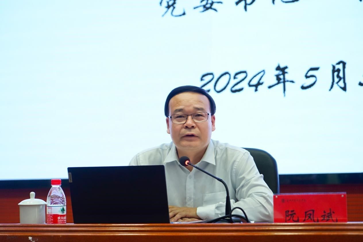 阮凤斌从“学习领会习近平总书记关于发展新质生产力的重要论述精神”“高校在推动新质生产力发展过程中起基础性、战略性支撑作用”“学习发展新质生产力的重要论述精神,围绕产业、就业,深化高校专业、教学改革”三个方面深刻阐述了新质生产力的基本内涵和主要特征,并探讨了高校在推动新质生产力发展过程中的角色与责任。他强调,高校必须结合国家产业发展战略和就业市场需求,深化人才培养模式改革,及时优化调整学科专业布局,加强专业内涵建设,深化人才培养质量,以培养具备创新精神和实践能力的高素质人才,为经济社会的高质量发展提供有力支持。此次讲座不仅丰富了与会者对新质生产力的理解,也为学校在新时代下的角色定位和发展方向提供了重要指导。