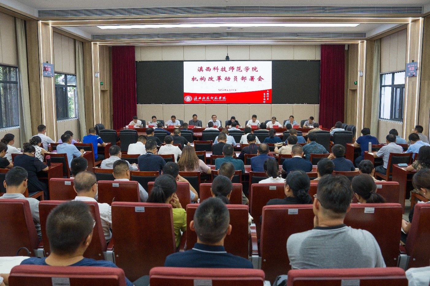 6月11日,滇西科技师范学院召开机构改革动员部署会。校党委书记阮凤斌出席会议并作动员部署,校党委副书记、校长刘艳红主持会议并作总结。